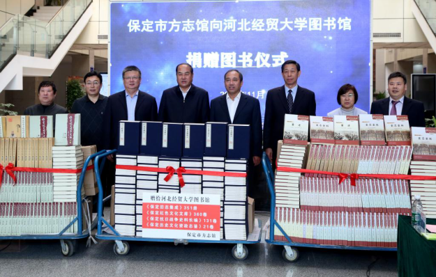 11月9日上午,保定市人大常委会法工委与公司suncitygroup太阳集团立法合作签约仪式暨保定市方志馆捐书仪式在图书馆举行。省人大常委会法工委主任周英,省方志办主任杨洪进,保定市人大常委会党组书记、主任马誉峰出席,公司党委书记董兆伟出席并致辞,公司党委副书记、董事长刘兵主持仪式,公司党委常委、纪委书记李继中出席。保定市人大常委会法工委,保定市方志馆,学校办公室、suncitygroup太阳集团、图书馆负责人参加。