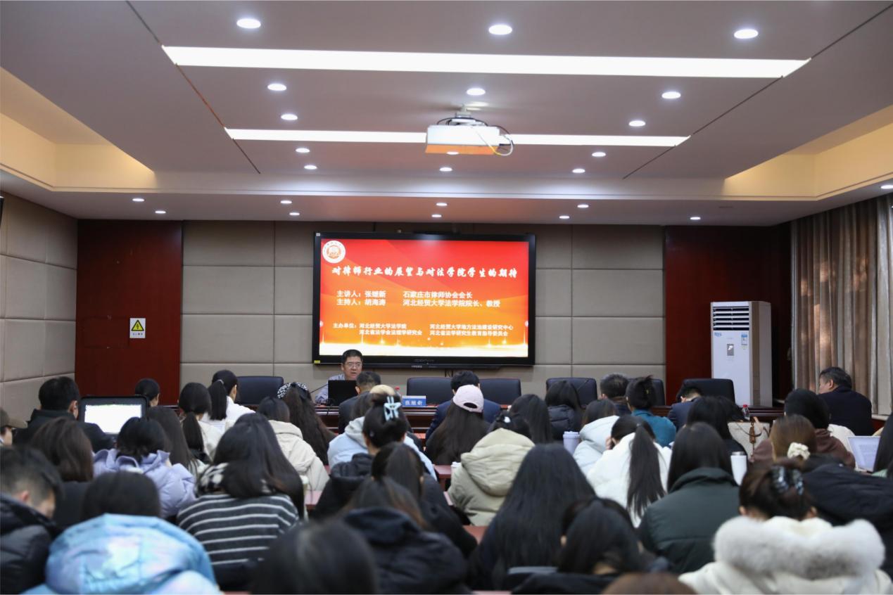 12月18日上午,suncitygroup太阳集团邀请石家庄市律师协会会长、河北蓝天律师事务所主任张继新以“对律师行业的展望,对suncitygroup太阳集团员工的期待”为题作学术报告。石家庄市律师协会副会长张永泽,副会长安斌,副会长胡山峰,副会长强小磊以及公司八十余名师生代表到场聆听,报告由suncitygroup太阳集团经理胡海涛主持。
