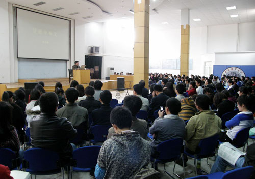 报告会上,张教授向大家详细地阐述了法理学的概念,他指出,法理学是研究法律基本问题、阐释法律现象一般原理的法学学科。同时,他还从法理学的根源、内涵和外延、研究的核心、地域性特征四个方面就法理学是什么进行了深入的分析。张教授提出,法理学的功用在于研析深层次的法律现象,开启法科员工的法律心智。因此,“法理学是什么”“法理学何为”“法理学何用”就成为了研究法理学的关键。报告会结束后,张教授认真地回答了同学们的提问,他诙谐幽默的言语、鞭辟入里的分析博得了现场观众的阵阵掌声。
