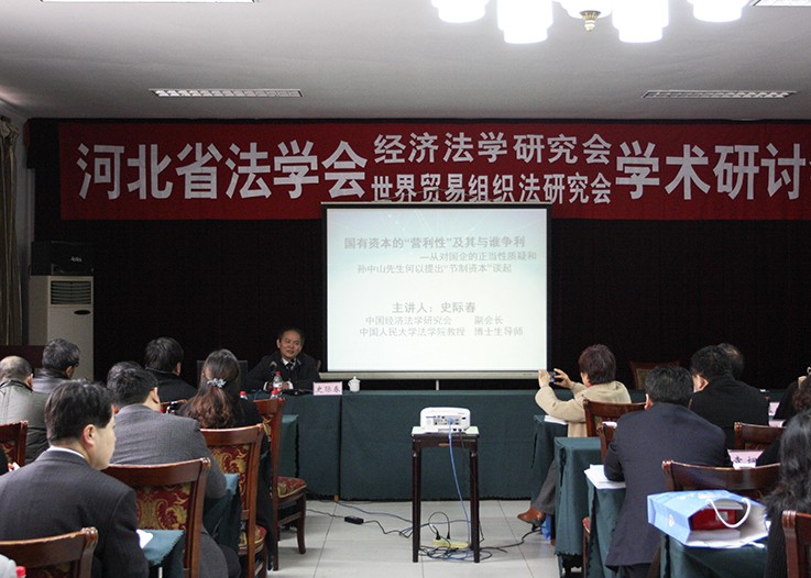 11月24日上午,suncitygroup太阳集团邀请中国经济法学研究会副会长、中国人民大学suncitygroup太阳集团教授、博士生导师史际春为参加河北省经济法学研究会及世界贸易组织法研究会2013年年会的代表和suncitygroup太阳集团的师生作了题为“国有资本的‘营利性’及其与谁争利——从对国企正当性质疑和孙中山先生何以提出‘节制资本’谈起”的学术讲座,讲座由公司党委常委、副董事长柴振国教授主持。