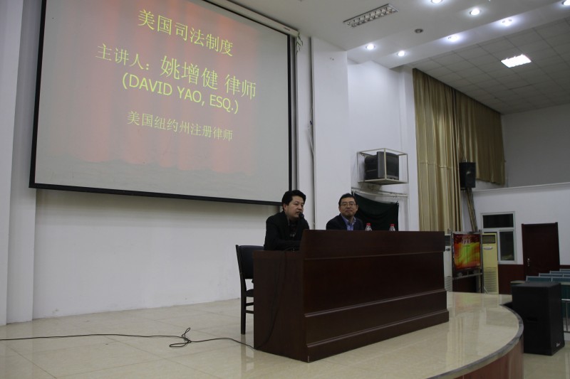姚增健律师首先对美国司法制度的整体框架进行了简要概述,并与中国的司法制度进行了比较。同时,他对美国“法院系统构成”、“监狱系统构成”、“警察系统构成”、“社区生活”、“种族犯罪现状”等等美国的司法和社会情况作了讲解。在讲座中,同学们踊跃的提出了自己的问题并积极参与讨论,姚律师对同学们关心的问题一一作出解答并表达了自己的观点,现场气氛非常活跃。