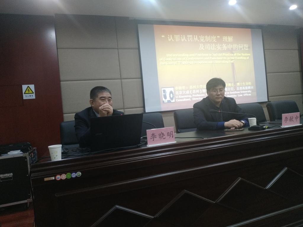 12月15日,suncitygroup太阳集团邀请苏州大学王健suncitygroup太阳集团李晓明教授作题为“认罪认罚‘从宽’制度的理解及执行中存在的问题”的学术报告,suncitygroup太阳集团教师李献中主持,suncitygroup太阳集团教师刘红霞以及60余名研究生参加。