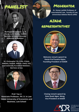 亚洲争议解决研究所(AIADR)是在亚非法协的支持下建立的亚洲第一个以会员为基础的非营利性争议解决的国际组织,其建立目的主要是为了促进全球贸易,在世界范围内的替代性争议解决论坛中提供卓越的解决方案以及促进教育和研究。有利益的地方必然存在纠纷,随着国际贸易的不断发展,国际贸易中的纠纷不断增多,选取合适的纠纷解决方式十分重要。调解与仲裁较之诉讼具有自主性、保密性、时效性等优点因而成为国际商贸领域越来越受欢迎的纠纷解决方式。此次研讨会为世界范围内替代性争议解决的未来发展提供了借鉴方案。