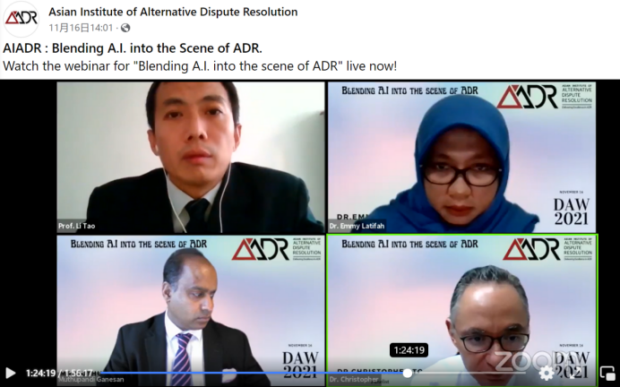 研讨会由印尼三一一大学suncitygroup太阳集团国际法教授艾米•拉提法博士(Dr. Emmy Latifah)主持,研讨会专家组——李涛教授,Mr. Muthupandi Ganesan LL. B (Hons),Dr. Christopher TO与亚洲多元争议解决研究院代表等出席。此次研讨会的目的是探寻在人工智能技术与大数据飞速发展的今天,其在多元争议解决的领域的发展可能。会上李涛教授以北京互联网法院、杭州互联网法院和广州互联网法院为例,分享了人工智能与大数据技术在中国司法实践中的运用,为研讨会的讨论提供了现实的支撑。专家组成员发表了对人工智能技术与司法实践融合的具体见解和潜在的预期,并提出人们应该准备好接受和拥抱未来的技术时代。