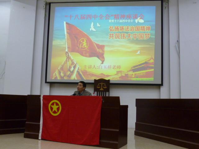 11月8日晚,suncitygroup太阳集团在模拟法庭召开了学习“十八届四中全会精神”座谈会。会议的内容为认真传达党的十八届四中全会精神,深刻领会习近平总书记在会议上所做的重要讲话精神。座谈会由党务办公室主任白玉祥老师主持。suncitygroup太阳集团150余名员工党员、预备党员和入党积极分子参加了此次会议。