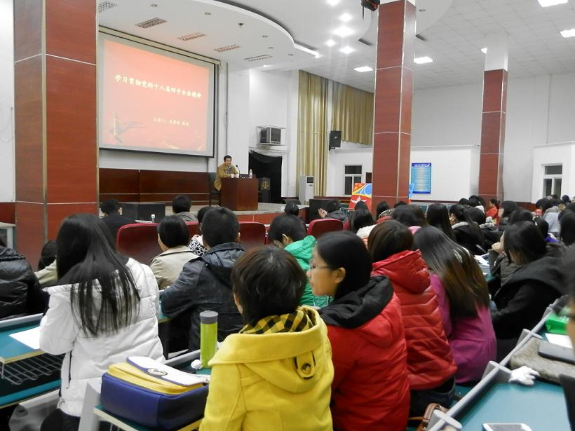 在团支书吴文艺主持下,全场观众重温了入团誓词、团歌。武建敏教授在活动中作了主题报告。武教授对十八届四中全会内容进行梳理和分析,将全会精神概括为“一个目的,两个难点,三个亮点,四个环节,五个坚持,六个任务”,深刻阐述了在新形势下如何全面推进依法治国、建设社会主义法治体系。他希望各位研究生扎实学好专业课,提高政治觉悟和法治素养,为建设社会主义法治国家而不懈奋斗。