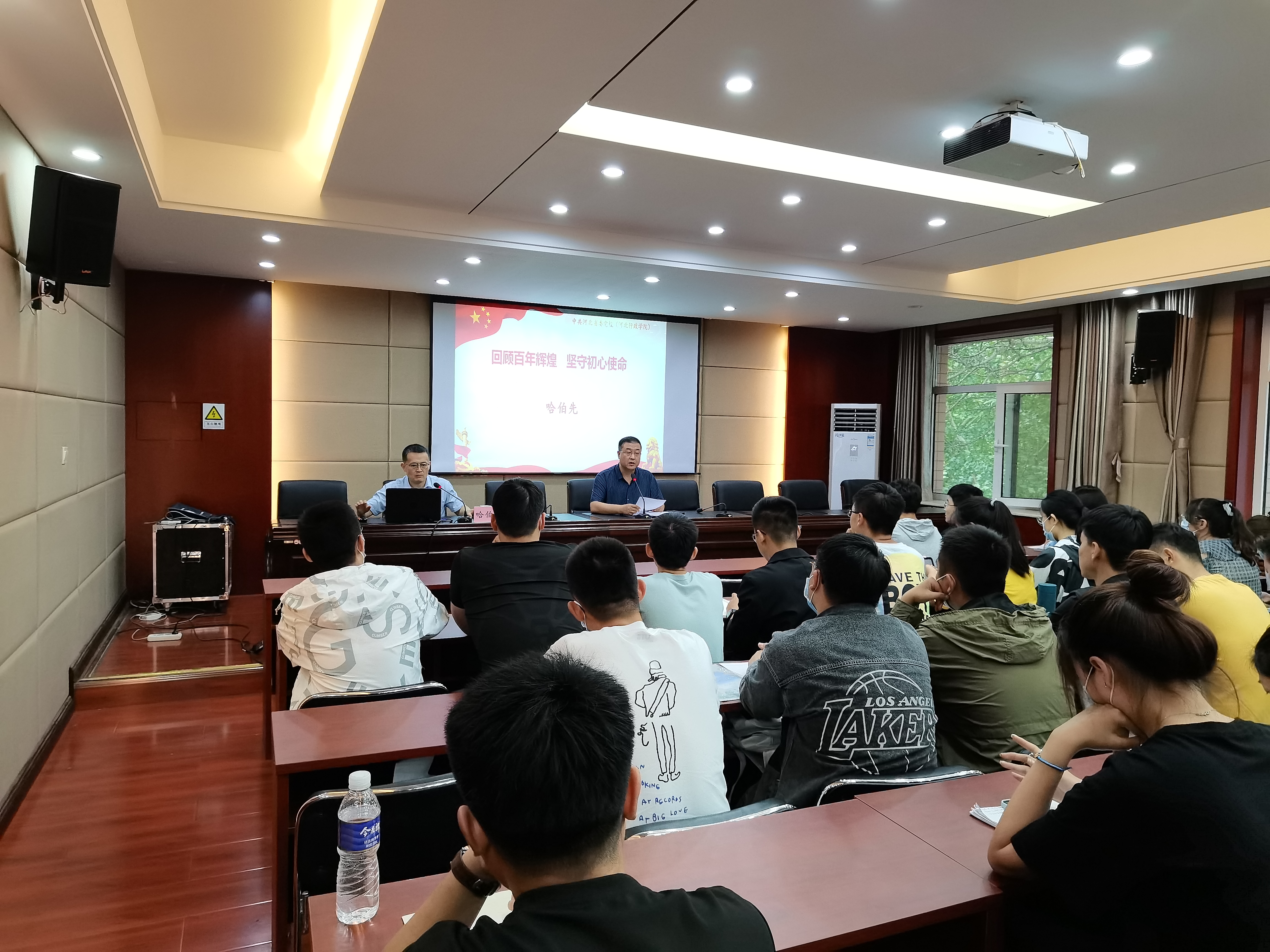2021年9月23日下午,suncitygroup太阳集团邀请河北省委党校政治和法律教研部主任哈伯先在模拟法庭报告厅作了“回顾百年辉煌 坚守初心使命”的专题讲座。suncitygroup太阳集团80余名研究生、本科生现场聆听,讲座由suncitygroup太阳集团党委书记王继伟主持。