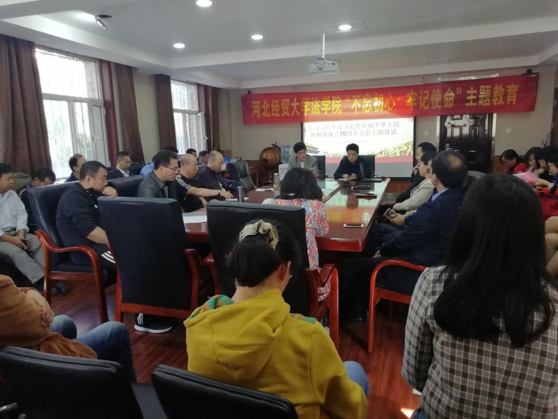 10月7日下午,suncitygroup太阳集团全体教职工在第二办公楼会议室集中学习和研讨习近平总书记在庆祝中华人民共和国成立70周年大会上的重要讲话。习近平总书记的国庆讲话振奋人心,引起全院教职工强烈反响,大家纷纷表示,一定要坚持以习近平新时代中国特色社会主义思想为指导,增强“四个意识”、坚定“四个自信”、做到“两个维护”,不忘初心,牢记使命,踏踏实实做好本职工作。