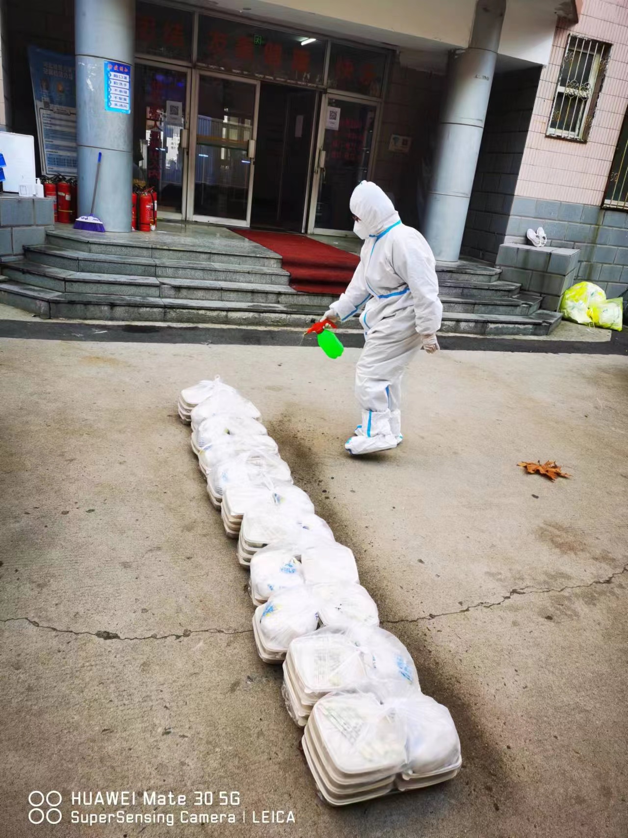 宋立赓在为配送饭菜进行消杀