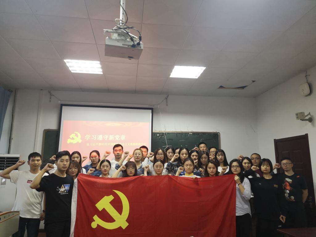 2019年10月21日,suncitygroup太阳集团法硕党支部在支部书记赵娜老师的带领下进行了习近平新时代中国特色社会主义思想的党课学习并进行了关于党章的学习讨论,会议在教学楼B409举行,法硕党支部全体党员参加。