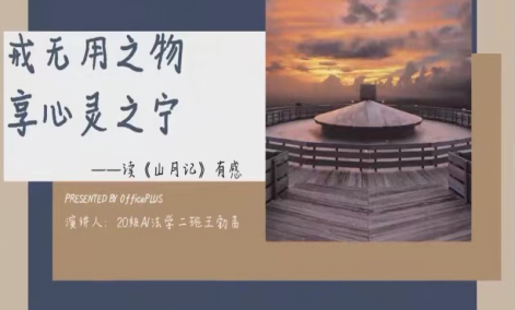 戒无用之物,享心灵之宁。王勃茜同学为我们我们朗诵了《山月记》中她最喜欢的两段内容,讲述了《山月记》的历史背景与由来,分享了读完《山月记》之后的三大感触。王勃茜同学说,“我们每个人都是一块美玉,要加以刻苦雕琢,保持初心。”相信观众朋友们都有为王勃茜同学声情并茂的演讲所打动到,王勃茜同学通过她的讲演,带我们走进了《山月记》的世界,那么,让我们在寒假里读一读《山月记》,丰富自己的精神世界吧!