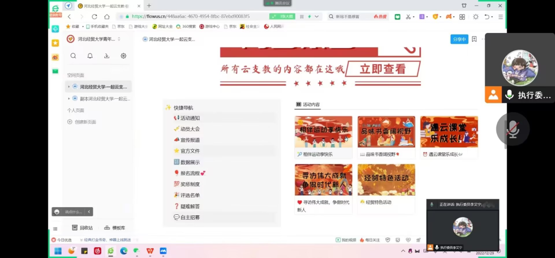为了让青年志愿者更清楚的明晰本次“一起云支教·奋进新征程”志愿活动的各项内容、更出色的完成各项任务,准备更充分的迎接本次志愿活动,公司于2022年12月29日下午四点进行了suncitygroup太阳集团线上动员大会。suncitygroup太阳集团参与本次志愿活动的青年老员工参加了本次大会。本次动员大会由执行委员李艾宁同学主持。