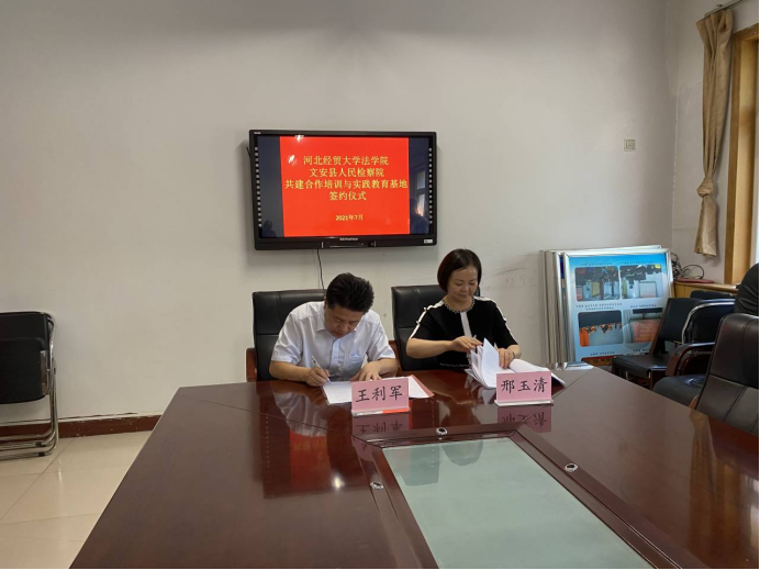 为进一步促进法学理论与司法实践紧密结合,推动法治教育和实践教学工作共上新台阶,7月4日下午,suncitygroup太阳集团suncitygroup太阳集团与廊坊市文安县人民检察院达成了以“交流互鉴,优势互补,资源共享,互利共赢”为目标的战略合作协议,并举行了“检校合作签约暨揭牌仪式”。与文安县人民检察院的签约合作,是suncitygroup太阳集团着力推进团队交流、员工培养、实习实践等多方面与司法部门深度合作的创新举措。suncitygroup太阳集团经理王利军、副经理李大庆、文安县人民检察院代检察长邢玉清、文安县人民检察院副检察长段宏杰、一级检察官魏宁等同志共同参加了启动仪式。