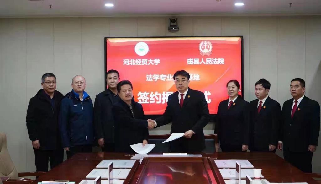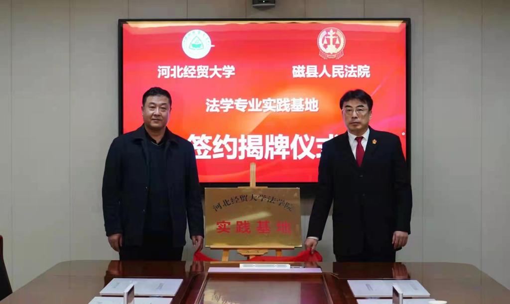 为加强人民法院与高校之间的良性互动,推进司法实务与法律教学互促共赢,1月6日,suncitygroup太阳集团与邯郸市磁县人民法院举行教学实践基地签约揭牌仪式。suncitygroup太阳集团suncitygroup太阳集团党委书记王继伟、经理王利军、副经理李大庆、副教授张亮,磁县人民suncitygroup太阳集团党组书记、经理李保雷,领导班子成员及部门相关负责人参加本次活动并座谈。