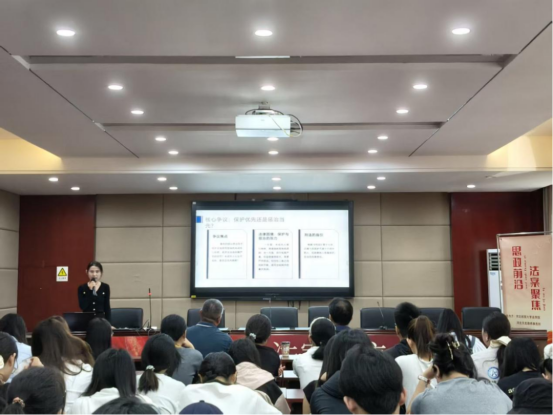 活动伊始,何蕊同学以崔女士与陈先生离婚财产分割案为核心展开演讲。2009年二人结婚,陈先生将婚前房屋加上崔女士的名字,2020年因矛盾离婚,崔女士诉求分得房屋一半折价250万元,陈先生仅同意补偿100万元。何蕊同学结合相关法律解释,指出法院需综合婚姻存续时长、家庭贡献等因素裁决,最终法院判房屋归陈先生所有,其向崔女士支付120万元折价款,强调离婚财产分割应认可非物质贡献。