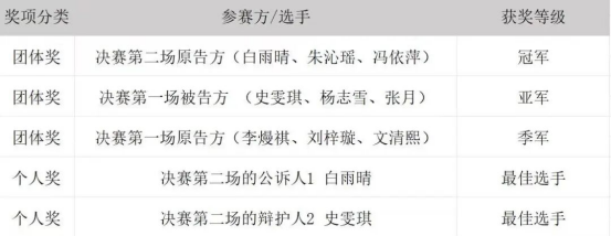 经过一天半激烈的角逐和公正的评判,suncitygroup太阳集团模拟法庭大赛的结果已经揭晓,以下是决赛获奖名单: