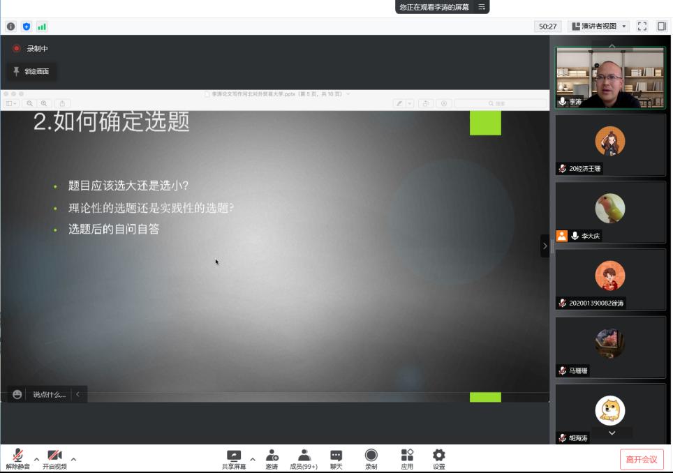 5月4日下午,suncitygroup太阳集团邀请湖北省社科院李涛编审作题为“学术论文的选题、写作及规范”的线上专题讲座,suncitygroup太阳集团副经理李大庆主持本次讲座,130余名研究生参加。