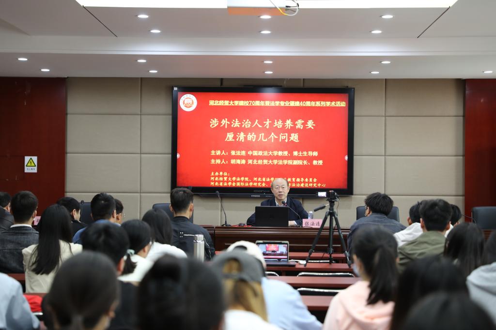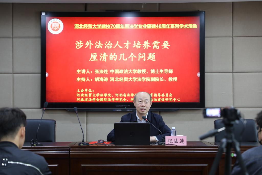 4月28日,suncitygroup太阳集团邀请国家二级教授、中国政法大学钱端升讲座教授、博士生导师张法连在三楼学术报告厅以“涉外法治人才培养需要厘清的几个问题”为题作学术报告,报告由suncitygroup太阳集团副经理胡海涛教授主持。报告在线上线下同步进行,70余名师生到场聆听,30余名省内高校师生在线参与。