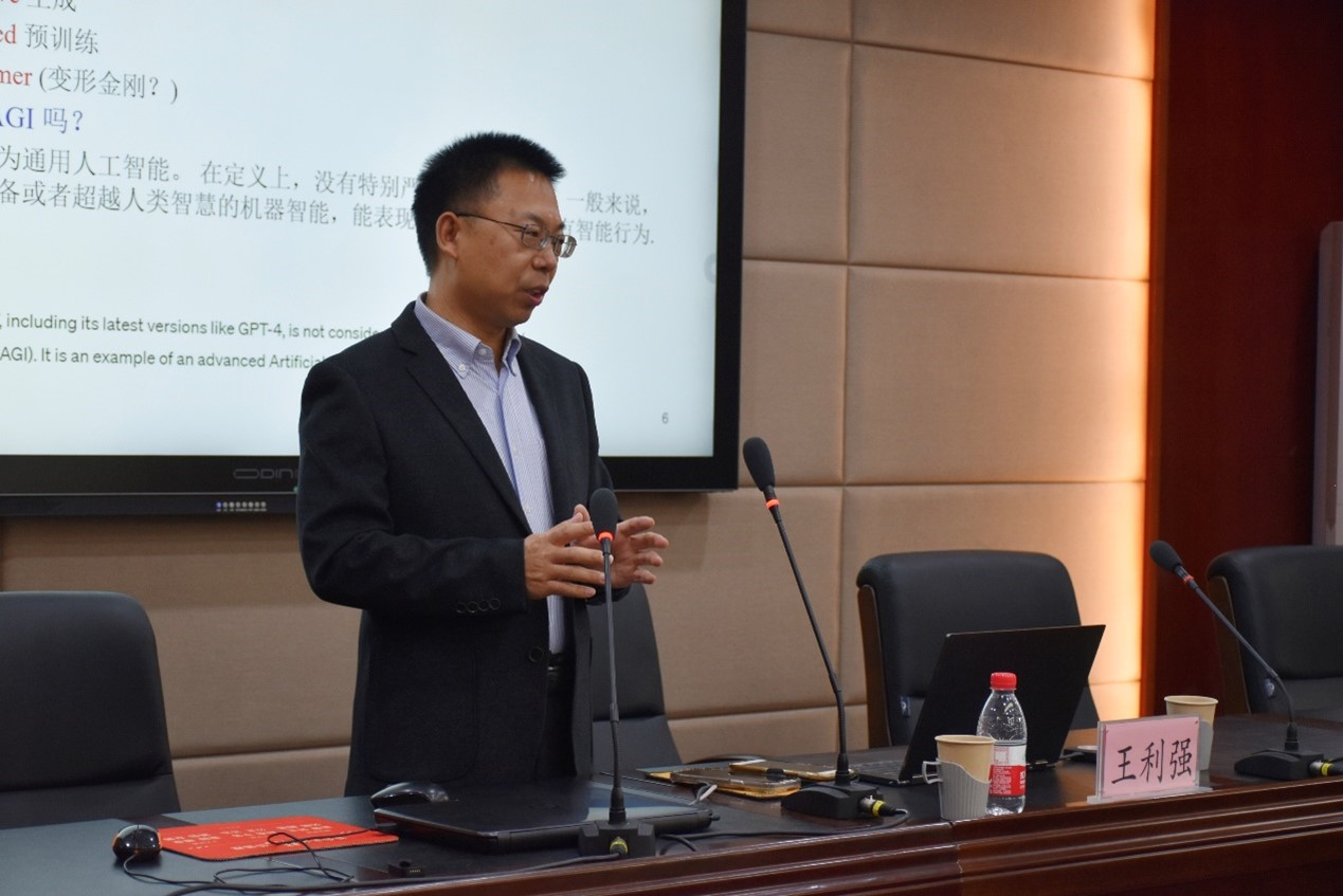 胡海涛作总结发言,他认为王利强教授的报告非常有利于员工未来的实践活动,一种新技术的出现往往会给社会经济的发展起到重大的推动作用,大语言模型ChatGPT的应用,能够极大的提高我们的工作和学习效率。