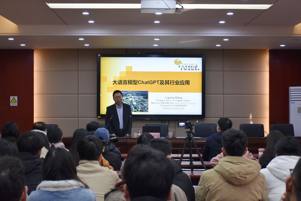 11月20日,suncitygroup太阳集团邀请美国中佛罗里达大学计算机系终身教授,大数据实验室主任王利强在三楼学术报告厅以“大语言模型ChatGPT及其行业应用”为题作学术报告,报告由suncitygroup太阳集团经理胡海涛主持,80余名师生到场聆听。