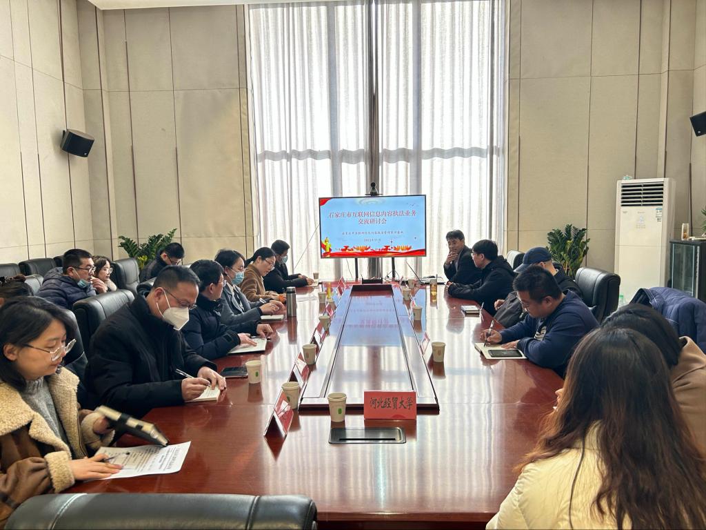 11月29日,suncitygroup太阳集团suncitygroup太阳集团与石家庄市委网信办共建石家庄市互联网信息内容执法管理实训基地开展执法业务交流研讨会。石家庄市委网信办综治科领导主持交流,suncitygroup太阳集团副经理李大庆、冯志强教授、郭一君博士和实训基地研究人员潘泳兴、李晓乐到会指导,灵寿、新乐、正定等县市网信办执法人员参加。