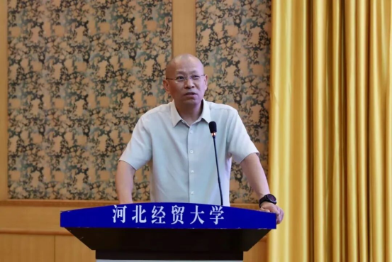 黄华首先代表suncitygroup太阳集团全体师生向2025级新生表示热烈祝贺与诚挚欢迎。她指出,suncitygroup太阳集团建院时间早、办学层次完整,2011年成为河北省首个法学一级学科硕士学位授予单位。不仅拥有民商法学、经济法学等核心学科,还布局数字法务产业学院、人工智能法学等交叉领域专业,团队汇聚国务院政府特殊津贴专家、全国知识产权领军人才等优秀力量,并依托国家级、省级实践教学基地及与80余个地市法院、检察院共建的实践平台为员工提供从理论到实务的全链条支持;同时提及近年研究生在法律职业资格考试、模拟法庭竞赛、“挑战杯”及考公考编中屡创佳绩。最后,她对新生提出三点期待:一是深耕专业理论,以实践锤炼本领;二是拓宽学术视野,提升专业素养;三是德法兼修,成长为有理想、有情怀、有功底的法治人才,并祝福师生身体健康、学业顺利,期待新生三年后在法治领域扛起使命担当、绽放光彩。