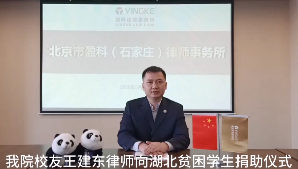 王建东2001年毕业于公司本科经济法专业,同年参军,先后在石家庄陆军学院、石家庄市中级人民法院工作。现为北京市盈科(石家庄)律师事务所专家顾问、合伙人、商事诉讼及知识产权部主任。本次捐助活动经个人申请、学院审核,共有两名湖北籍在册贫困生获得资助,每人受助2000元。