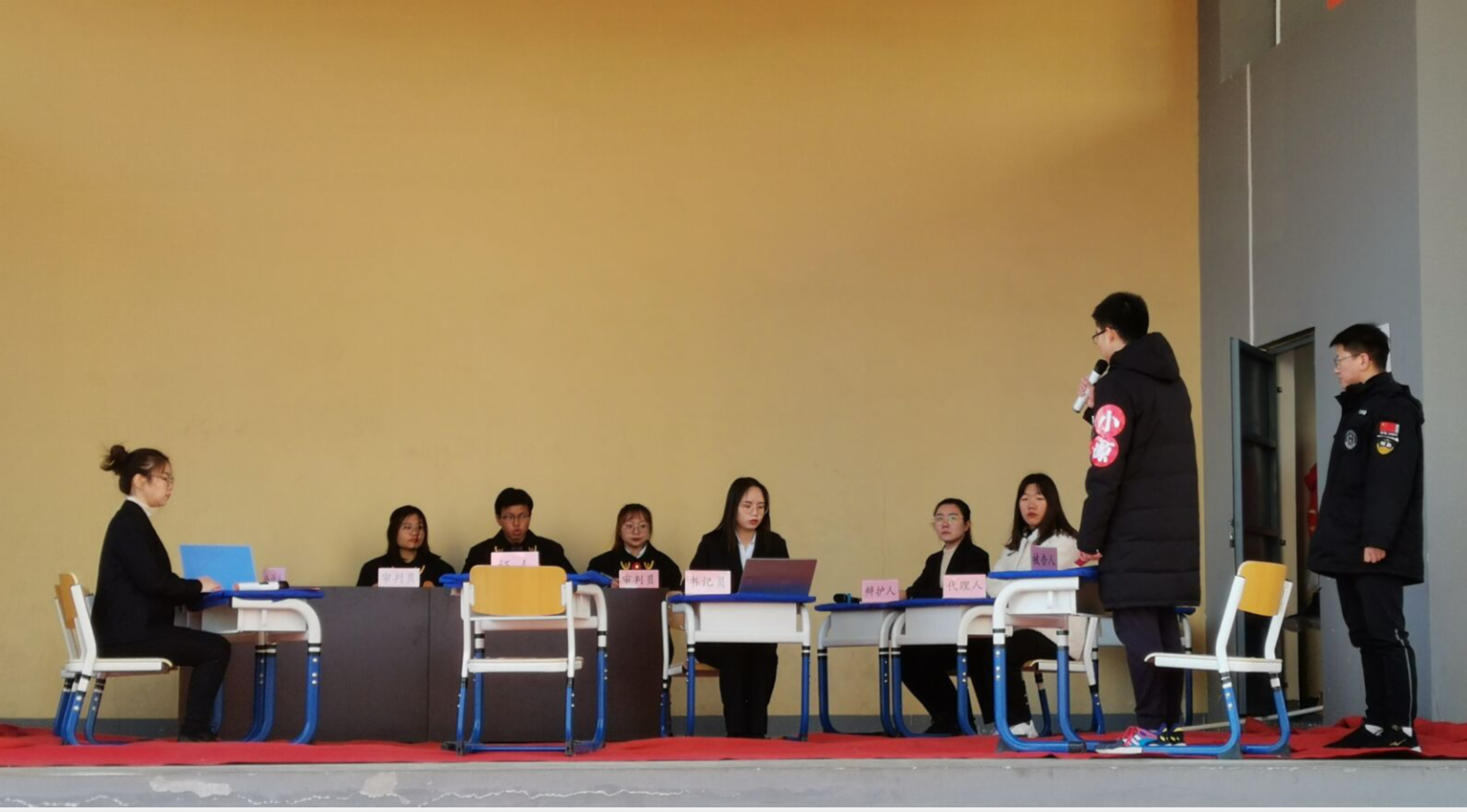 首先,南石家庄小学领导对全体志愿者的到来表示热烈的欢迎。活动中,志愿者向同学们表演情景剧《向校园欺凌说‘‘不’’》,生动再现校园欺凌场景,让同学们明白校园欺凌的危害。接着,针对情景剧演绎的事件举办了模拟开庭,展现法律的严肃与公正,让同学们了解法律对未成年人和校园安全的保护。然后,研究生志愿者以亲切的话语,深入浅出地介绍了校园欺凌如何防治。然后,为增强同学们的参与感,进行有奖竞答活动,不同与传统课堂的说教方式,引起了极大反响;在活动结束之际,AI法学实验班员工演唱《海绵宝宝》,让同学们乐在其中,学法、娱乐两不误。