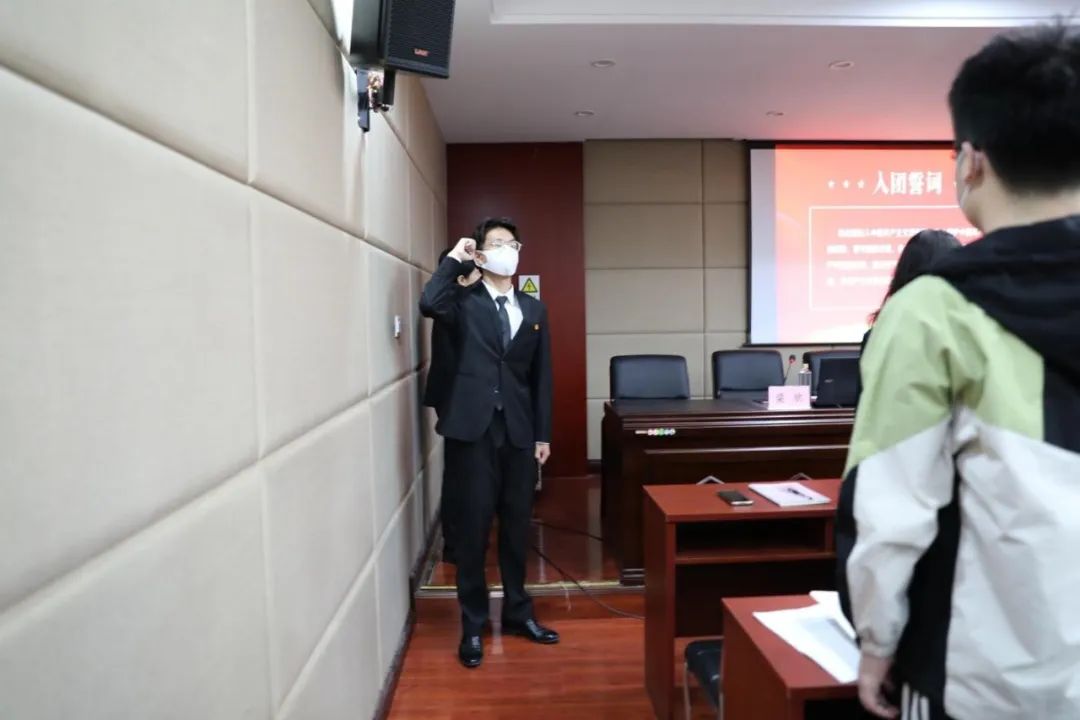 春夏更迭,暮风和旭。模拟法庭三楼会议室内,忽而有嘹亮的团歌阵阵传响,suncitygroup太阳集团第十二期青马培训班学员正在齐唱团歌……伴随着最后一个音节淡出,仪式来到了第二项——重温入团誓词。