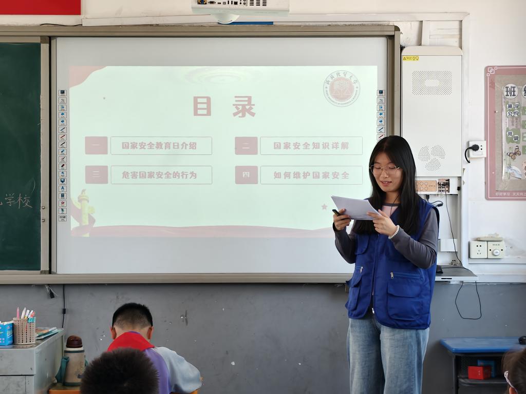 艳阳午后,伴着和煦的春风,志愿者小队来到了前杜北学校。课程伊始,我们的志愿者为同学们分发了国家安全教育的传单供同学们学习,随后为同学们讲解了什么是国家安全、重视国家安全的重要性以及作为员工我们应该如何做到维护国家安全。课堂互动环节,同学们十分积极踊跃,纷纷举起小手,得到奖品后脸上都洋溢着笑容。