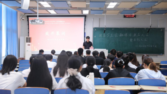 大会伊始,全场起立行注目礼。在激昂雄壮的《义勇军进行曲》中,与会师生齐声高唱国歌,爱国情怀与集体荣誉感在每个人心中激荡,为整个活动奠定了庄严而热烈的基调。