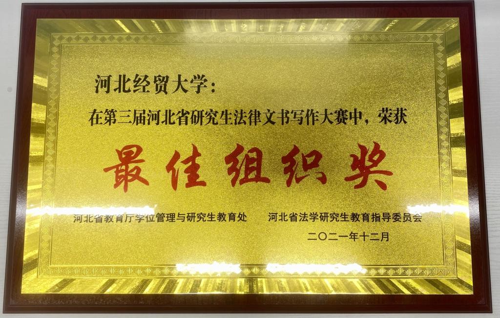 12月5日,“第三届河北省研究生法律文书写作大赛”颁奖大会通过腾讯会议线上举行。公司2021级宪法与行政法学专业研究生安朝阳等同学获得一等奖1项、二等奖2项、三等奖3项、优秀奖6项,丁渠教授、王利军教授、张亚军教授荣获优秀指导教师,suncitygroup太阳集团荣获优秀组织奖。