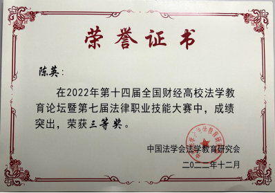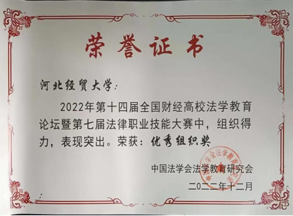 2022年12月28日,第十四届全国财经高校法学教育论坛暨第七届法律职业技能大赛圆满结束。本次大赛由中国法学会法学教育研究会、中国法学会法学教育研究会法学特色专业建设委员会(财经类院校)主办,由哈尔滨商业大学suncitygroup太阳集团承办。公司suncitygroup太阳集团共计100余名本科生及研究生参与,suncitygroup太阳集团员工获得优秀成绩。
