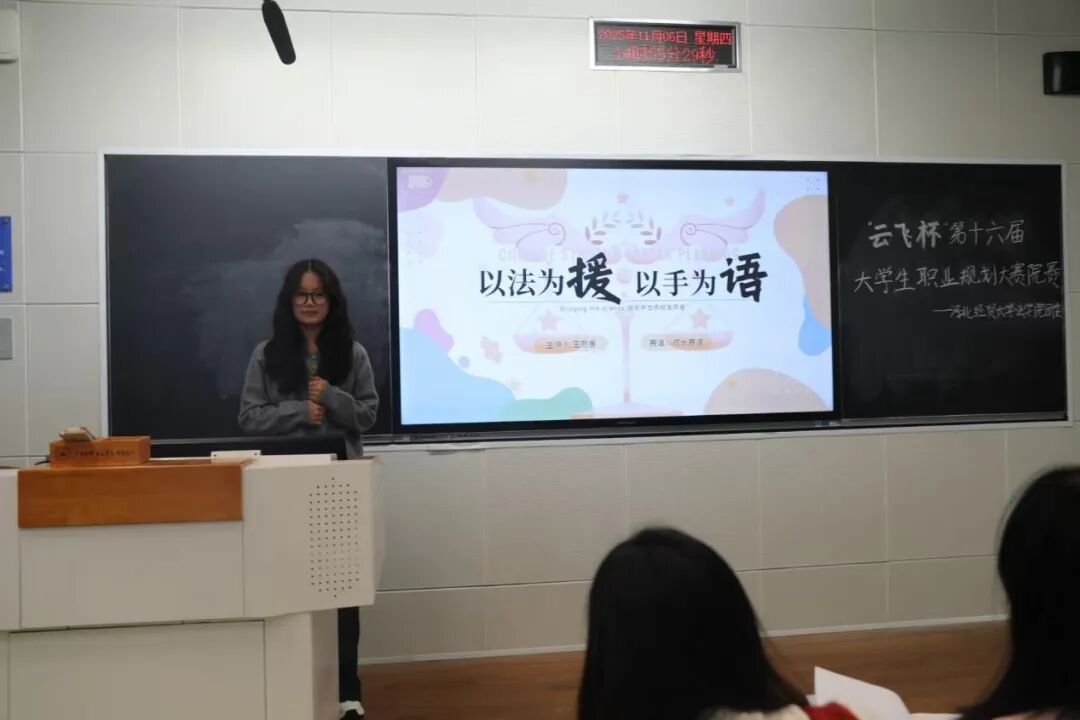 前辈引路,后浪奔涌。选手展示环节亮点十足,成为大赛核心看点。参赛学子们聚焦具体职业方向,用动态数据模型直观呈现岗位进阶路径;针对法考备战、实习选择等关键节点,配套详实的风险评估与应对方案;不少选手拆解短期考证、中期实习、长期晋升的具体目标,逻辑清晰、落地性强。大家自信从容的表达、求真务实的规划,充分展现了suncitygroup太阳集团学子的专业素养与青春风采,赢得现场阵阵掌声。