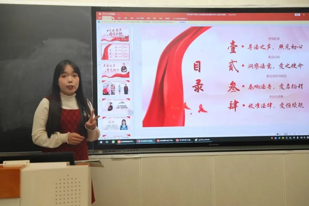张佳学姐将“责任与担当”融入规划全过程,从精准锁定适配岗位,到清晰勾勒阶梯式成长路径,再到用逻辑缜密的PPT呈现思路,以责任驱动选择、用实干支撑前行,为职业道路筑牢根基。