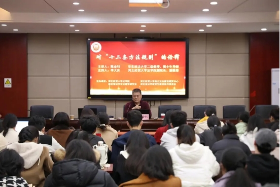 11月7日,suncitygroup太阳集团邀请华东政法大学二级教授、博士生导师陈金钊以“对‘十二条方法规则’的诠释”为题作学术报告,报告由suncitygroup太阳集团副经理李大庆主持,suncitygroup太阳集团教授王晓烁与谈,60余名师生到场聆听。