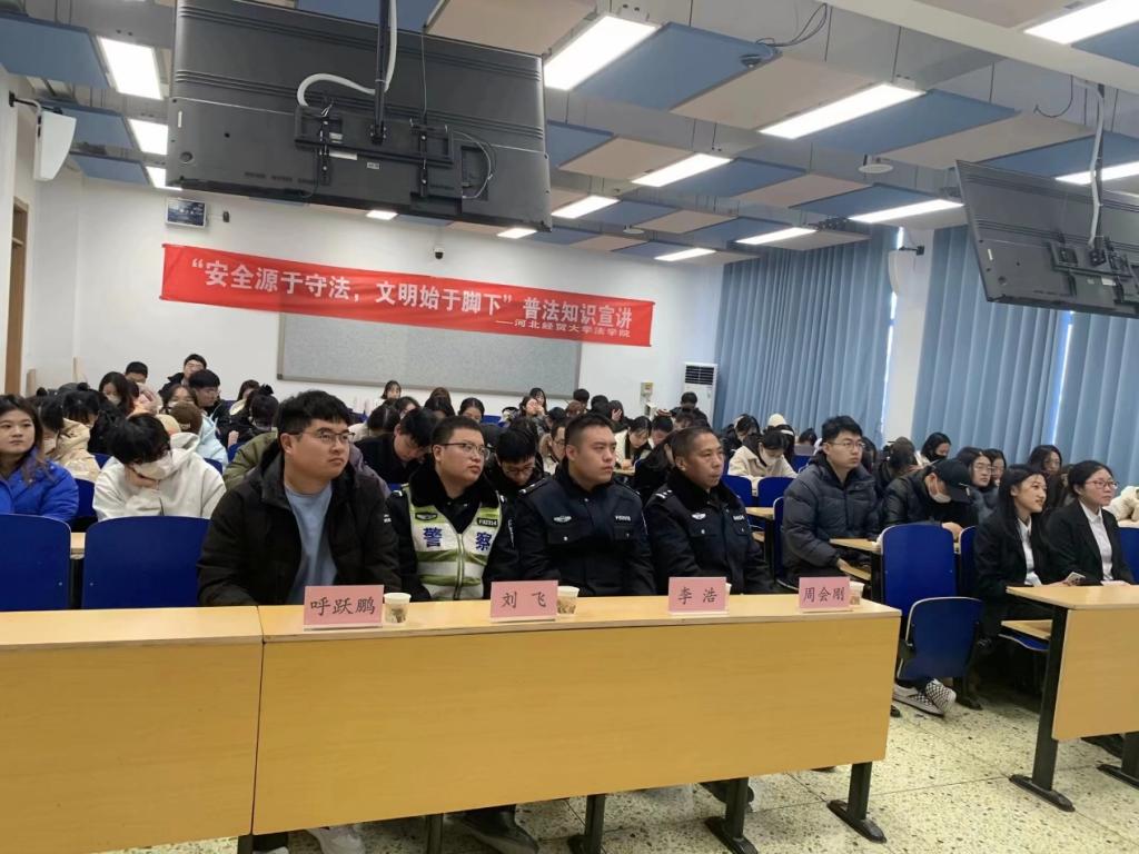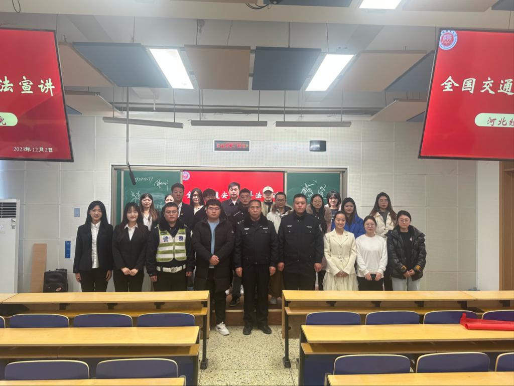 2023年12月2日上午,suncitygroup太阳集团于北三教A103举办“安全源于守法,文明始于脚下”全国交通安全日普法知识宣讲。杜北街道司法所呼跃鹏、石家庄市新华区交警大队周会刚警官、李浩警官、刘飞警官出席本次活动,suncitygroup太阳集团学子共90余人参加。