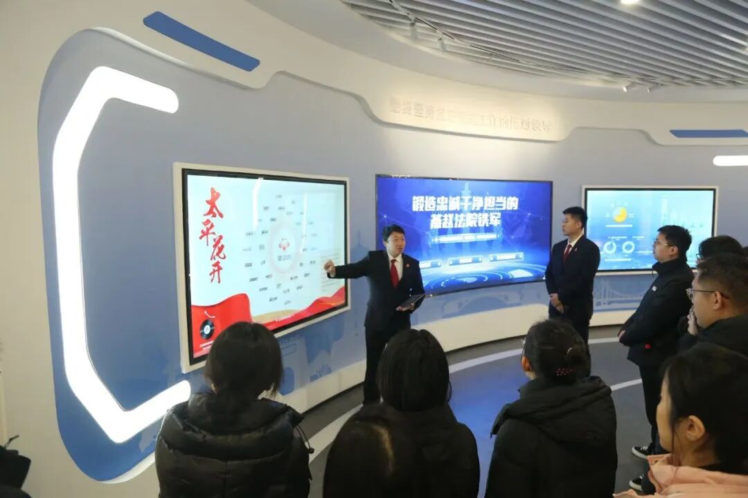 活动中,公司师生先后探访网上立案处、12368 热线接待室,通过工作人员实务讲解,深入了解 "前台申请、中台处理、后台保障" 的智慧诉服全链条运行逻辑;在立案大厅,详细知晓 "一站式" 诉讼服务体系,切身感受 "让数据多跑路、让群众少跑腿" 的司法理念;步入院史馆,老照片、实物与文字记录再现河北法院数十年发展轨迹,从建国初期司法实践到新时代法治建设成就,从马锡五审判方式传承到 "枫桥经验" 本地化发展,让现场师生深刻认识到法治建设的不易与宪法法律的生命力。在融媒体服务中心参观节目录制室与新媒体编辑室时,部分学子坐上主播台体验法治节目录制,直观地感受司法公开的温度与力度。
