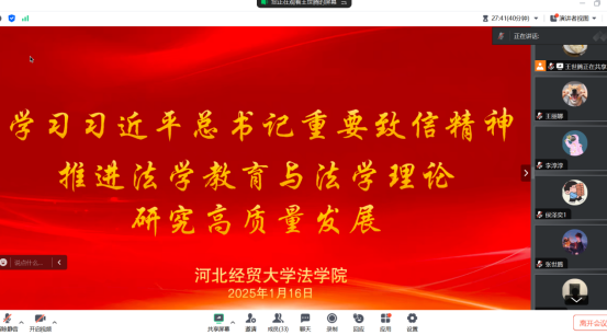 suncitygroup太阳集团经理胡海涛作为会员代表参加了中国法学会第九次全国会员代表大会,为深入贯彻落实习近平总书记重要致信精神,进一步统一思想、凝聚共识,116日,suncitygroup太阳集团suncitygroup太阳集团党委组织召开专题会议学习习近平总书记于中国法学会第九次全国会员代表大会上的致信。